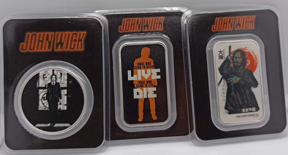 Popis:John Wick Sada 3 ks stříbrných 1 oz slitků